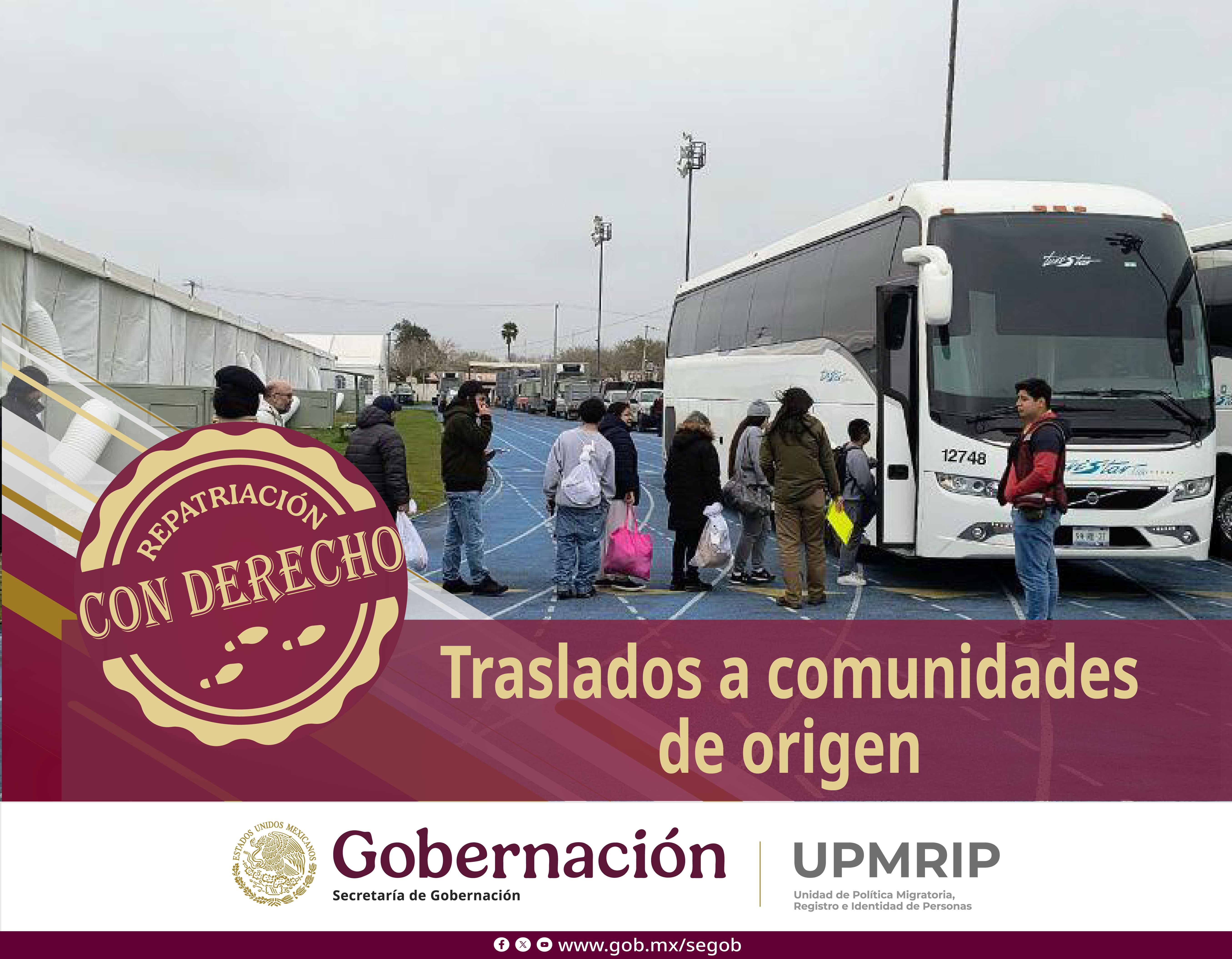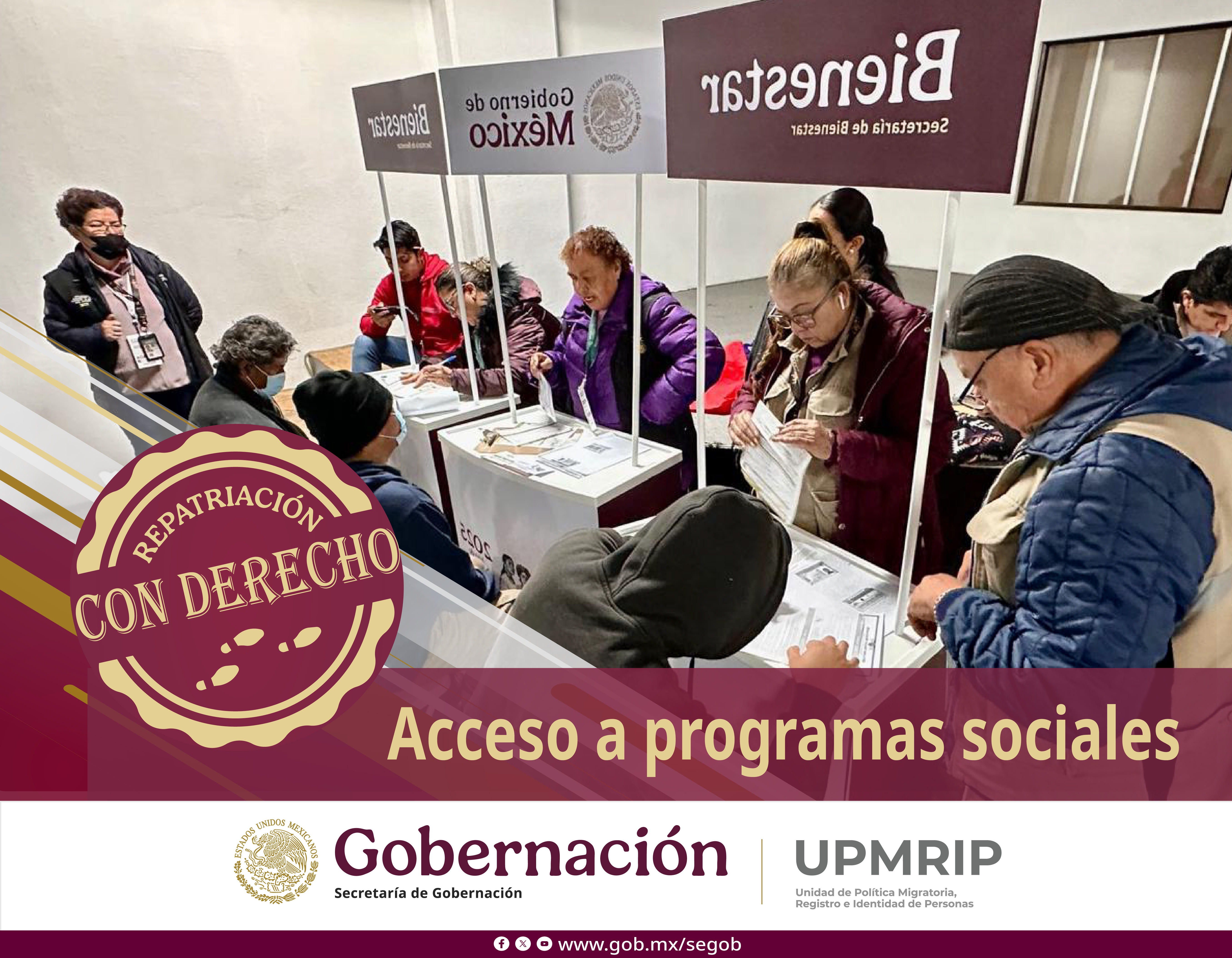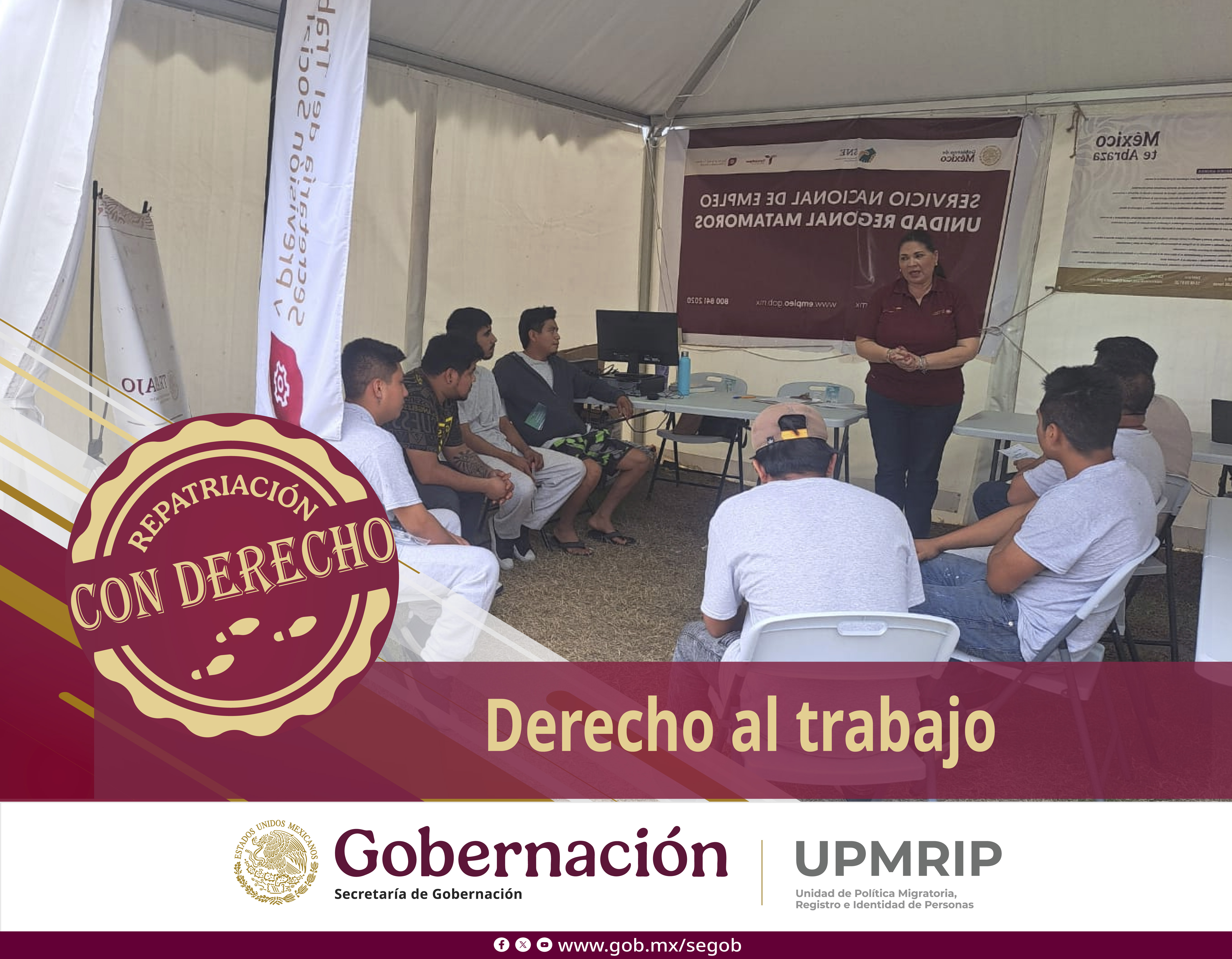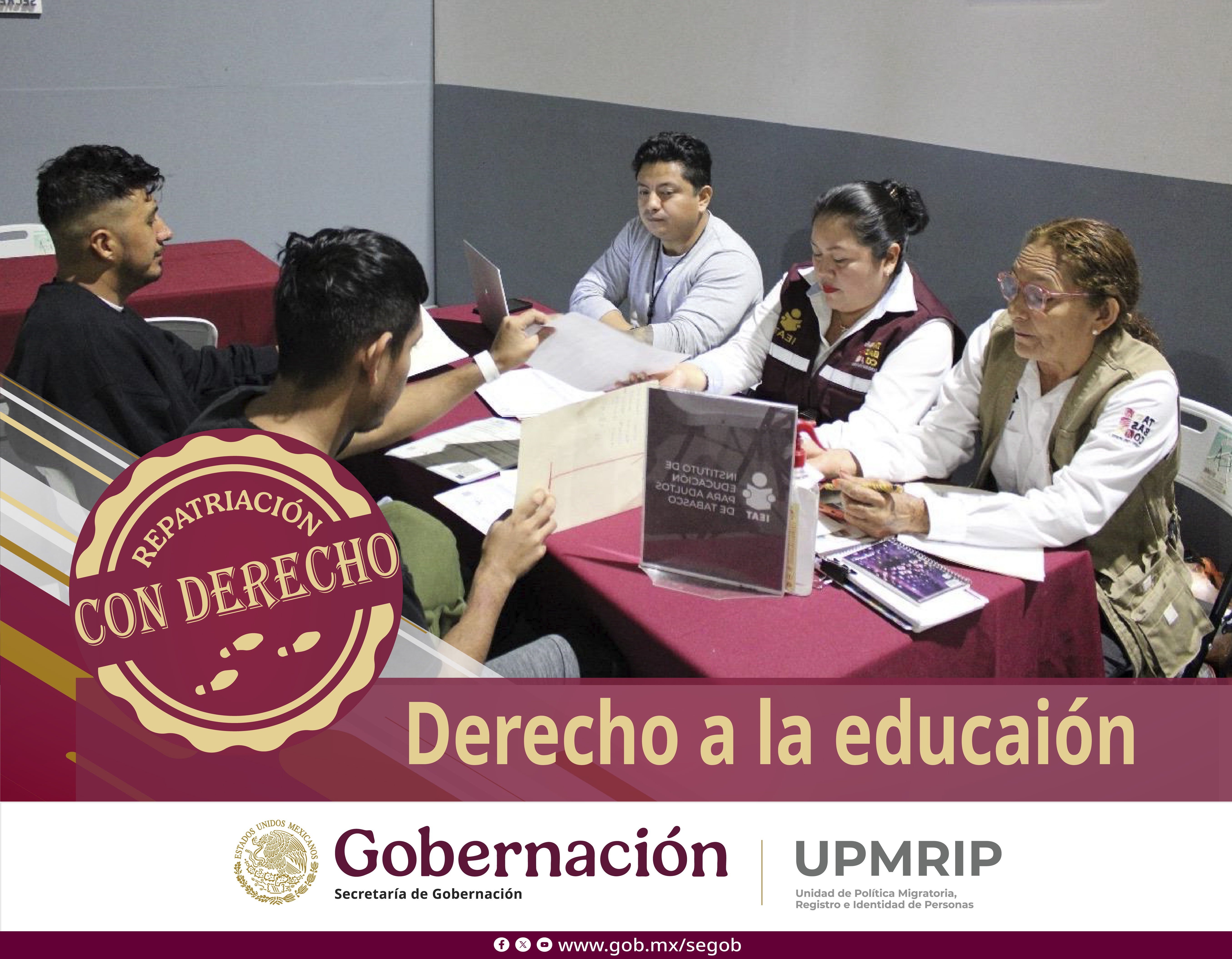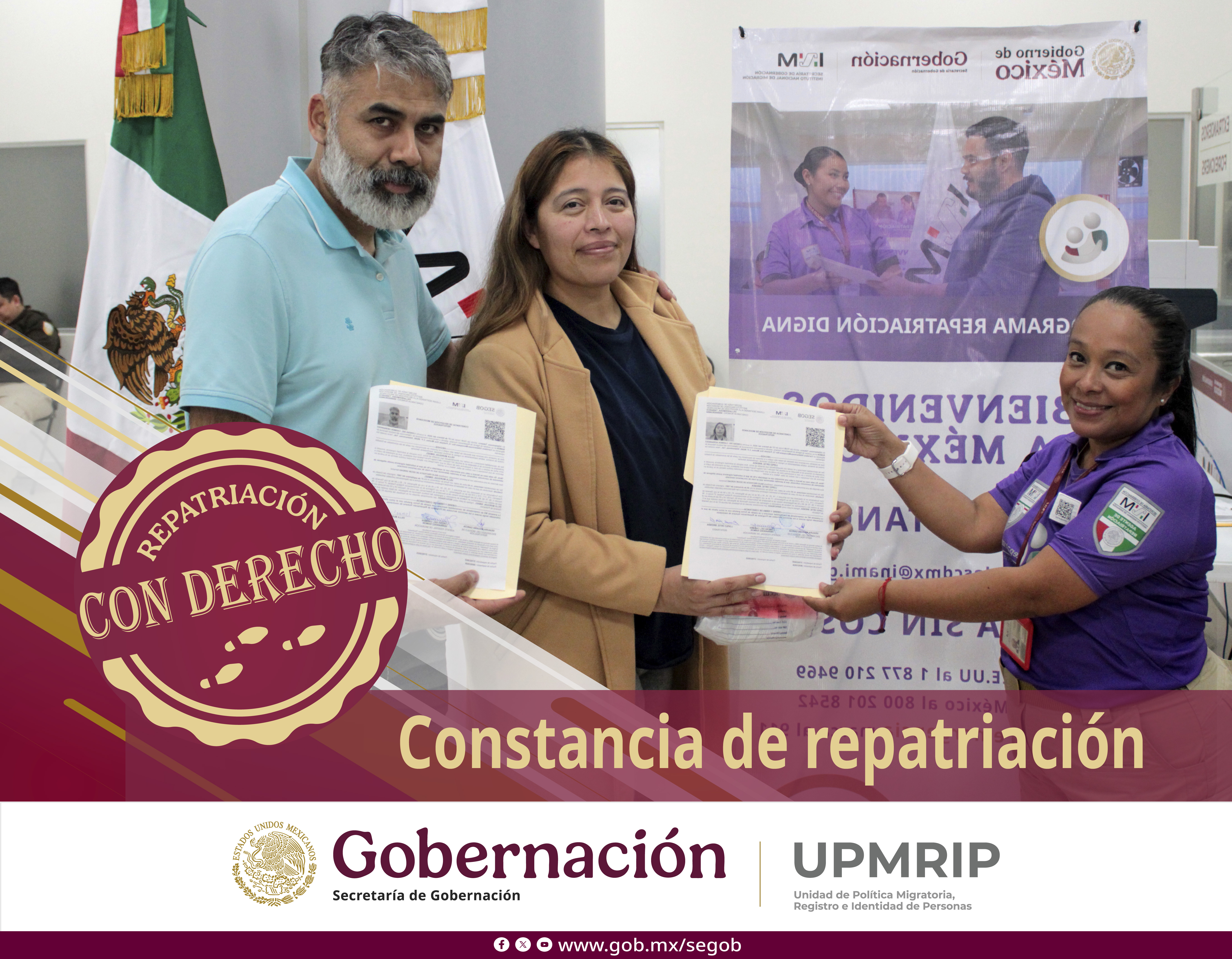 Objetivo: Dar a conocer a las personas mexicanas retornadas, repatriadas y deportadas los derechos, apoyos y servicios a los que pueden acceder al regresar al país, visibilizando las acciones del Gobierno de México —como la entrega de la Constancia de Repatriación y la estrategia México te abraza— para garantizar una bienvenida digna, atención inmediata e integración efectiva en sus comunidade.
